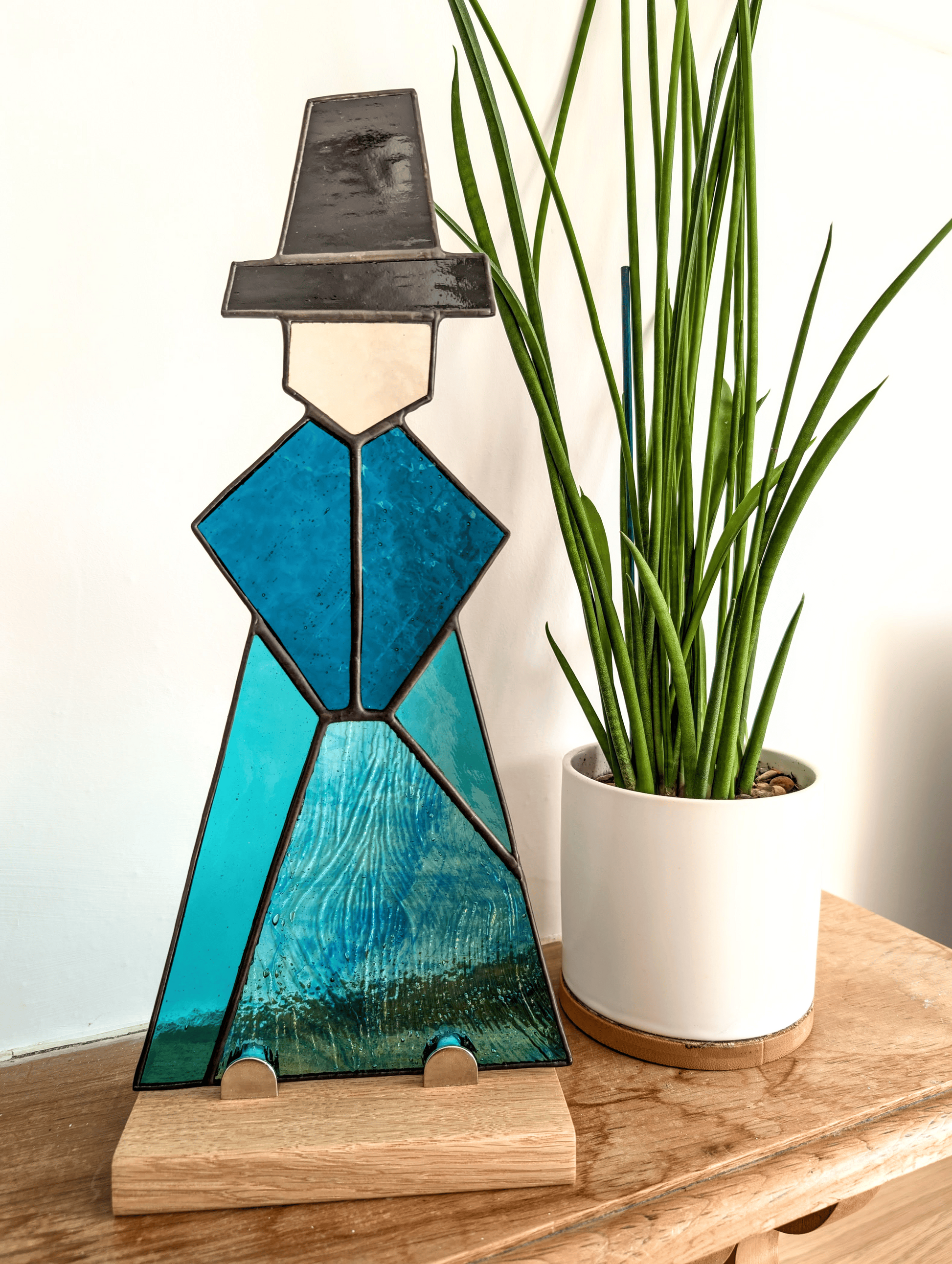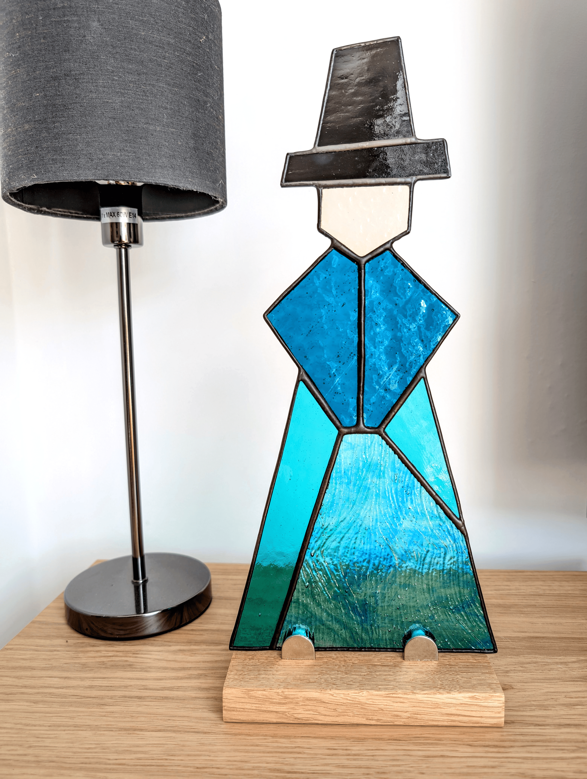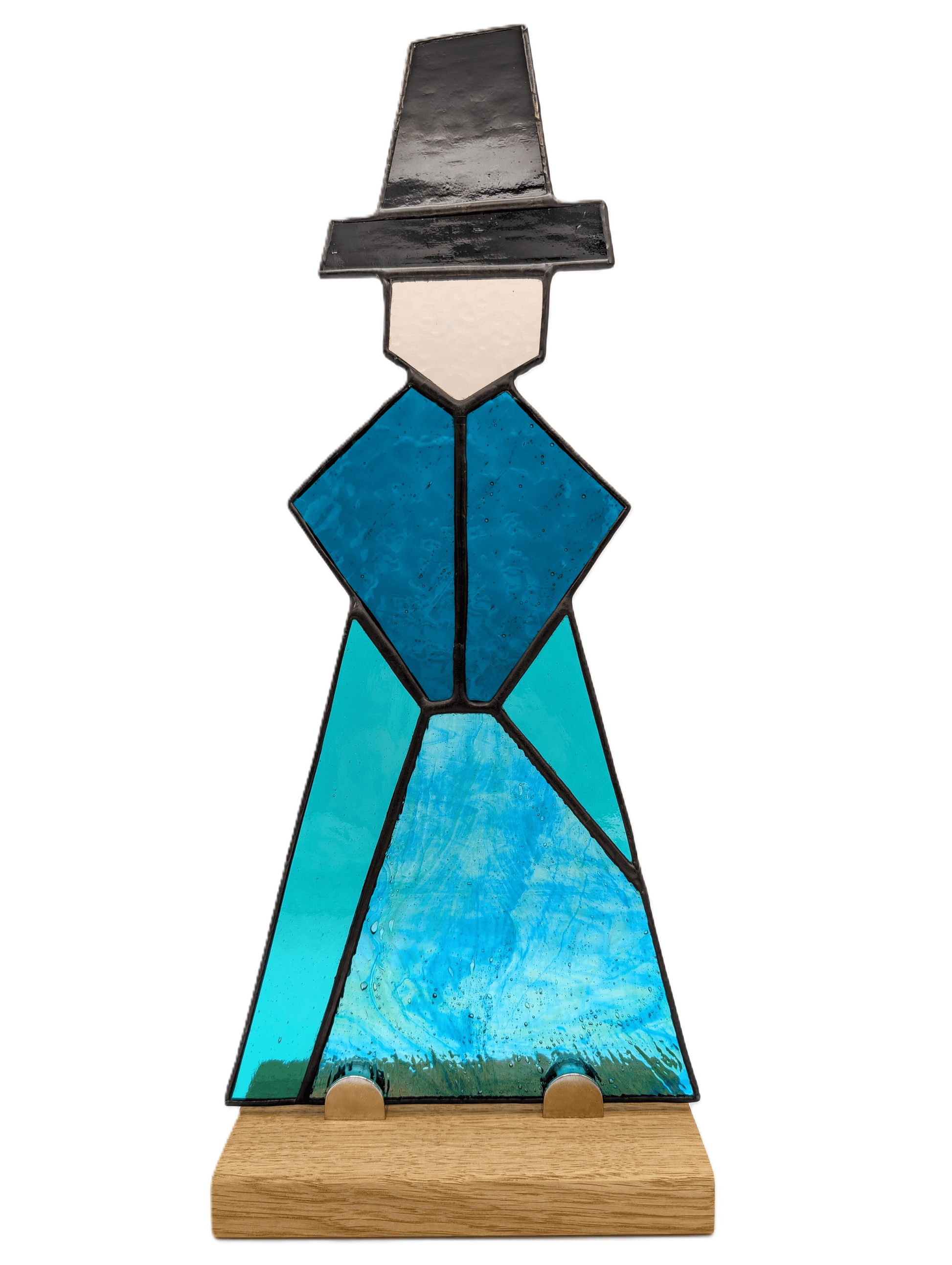 Each piece is made to order, and you’re welcome to choose the colours of the poncho and skirt in the order notes. I will then carefully select the glass textures and tones that bring those choices to life, ensuring your piece is harmonious, unique, and truly one of a kind. If you do not provide any colour preferences, I will use the colour scheme from the pictures shown. The iconic Welsh hat will be made from opaque black glass - as shown in pictures, to maintain the integrity of cultural reference and design.