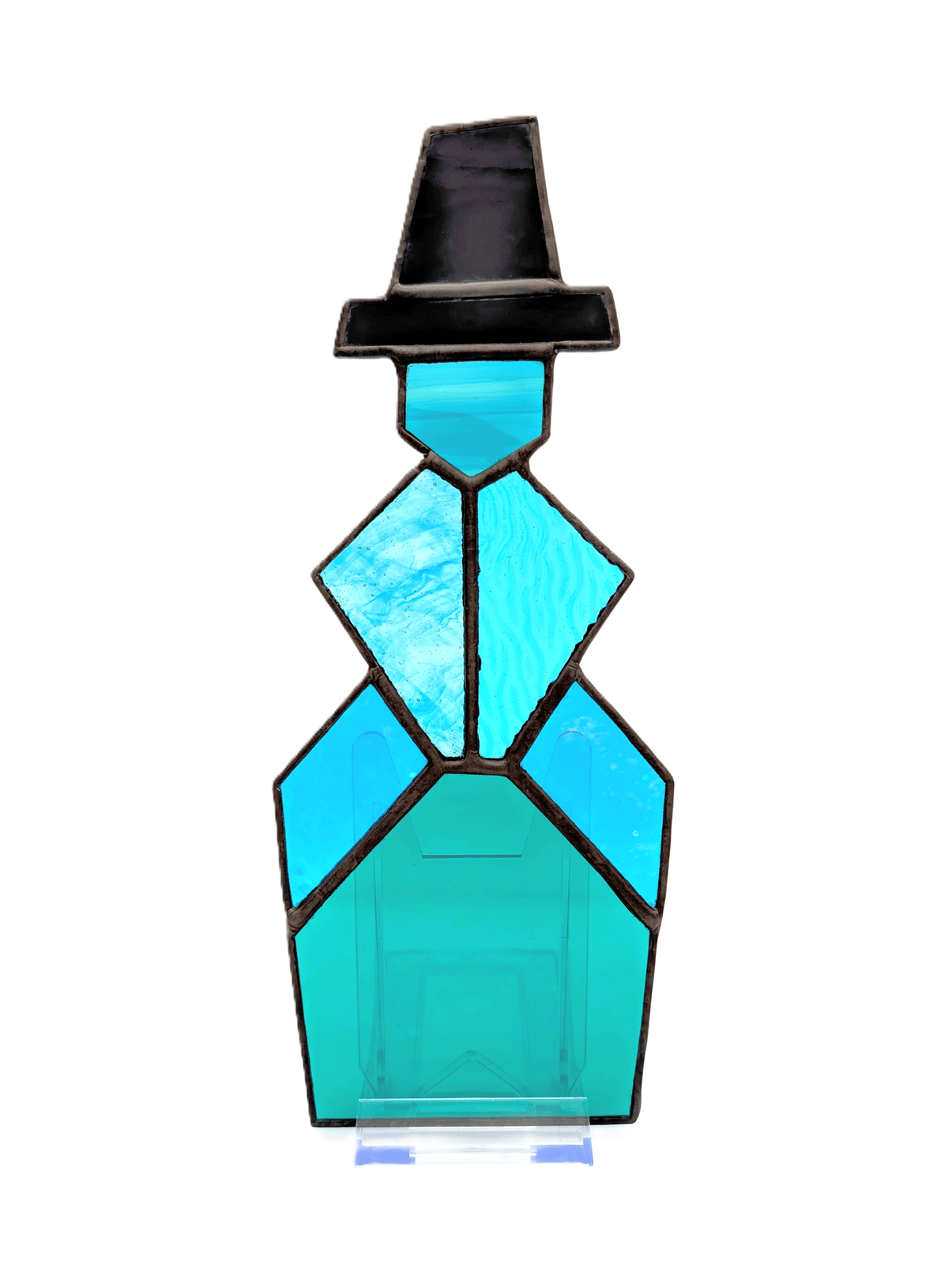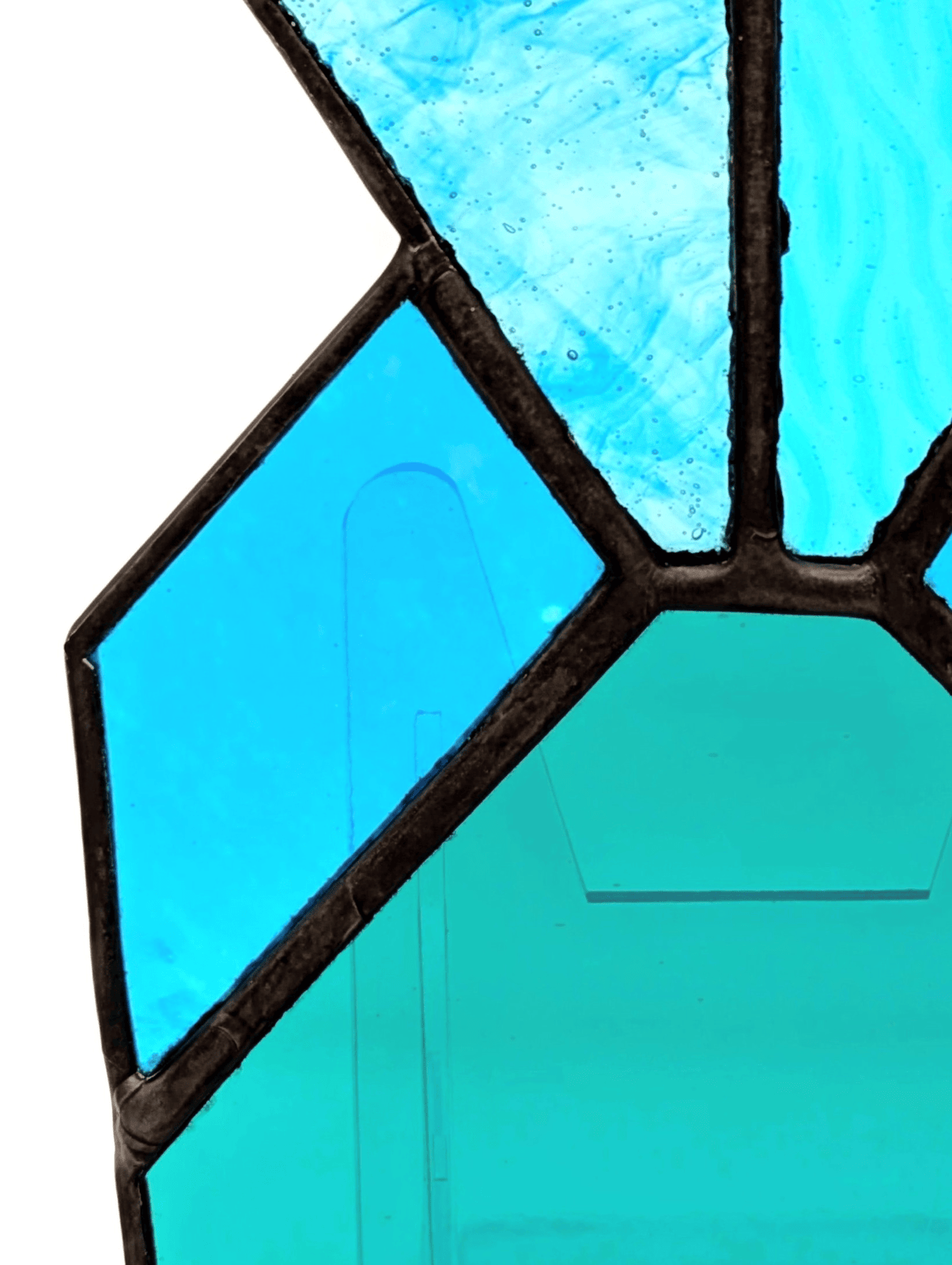 This piece is handmade using the copper foil stained glass technique. It contains solder made from lead and tin, and lead came may be present. For safety, please wash hands after handling. This is decorative glass art intended for indoor display and is not a toy - keep out of reach of children and pets.